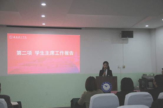 会议首先听取并审议了上一届学生会工作报告和提案工作报告。学院学生会主席团成员唐紫怡同学代表kaiyun开云官方学院学生会向大会做出工作报告,报告从思想引领、组织建设、学生会改革情况、学风创建、志愿服务、权益维护等方面作了工作回顾,并对未来学生会工作提出思路建议。