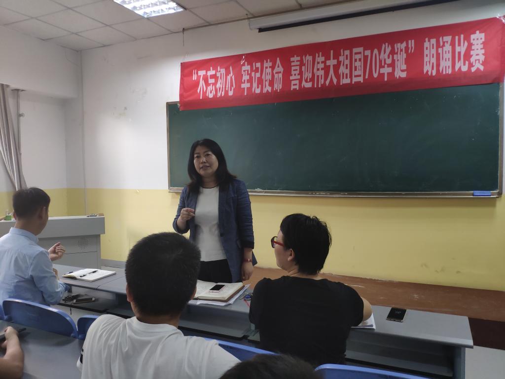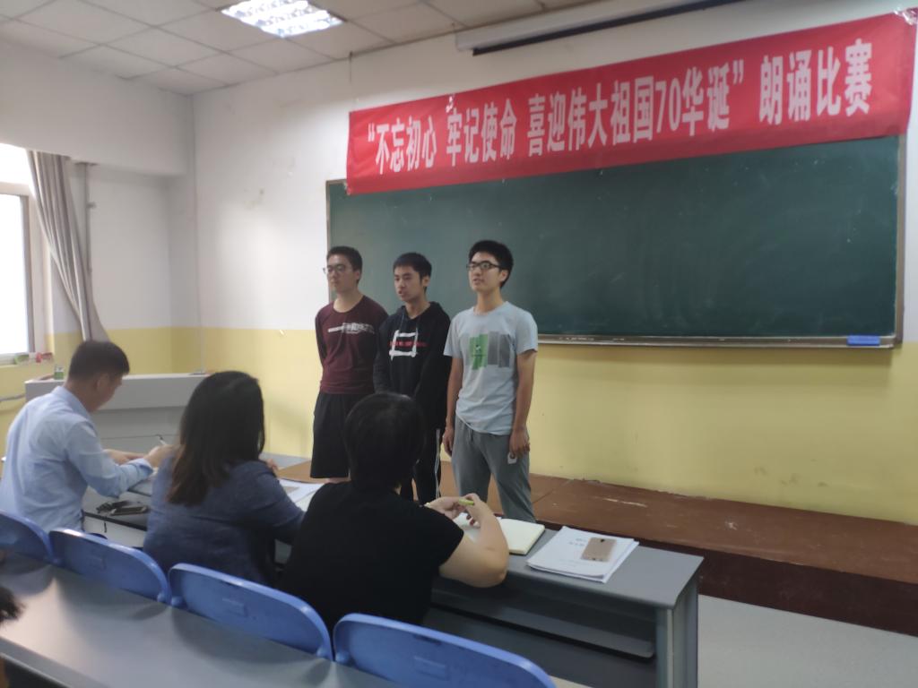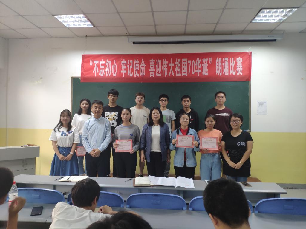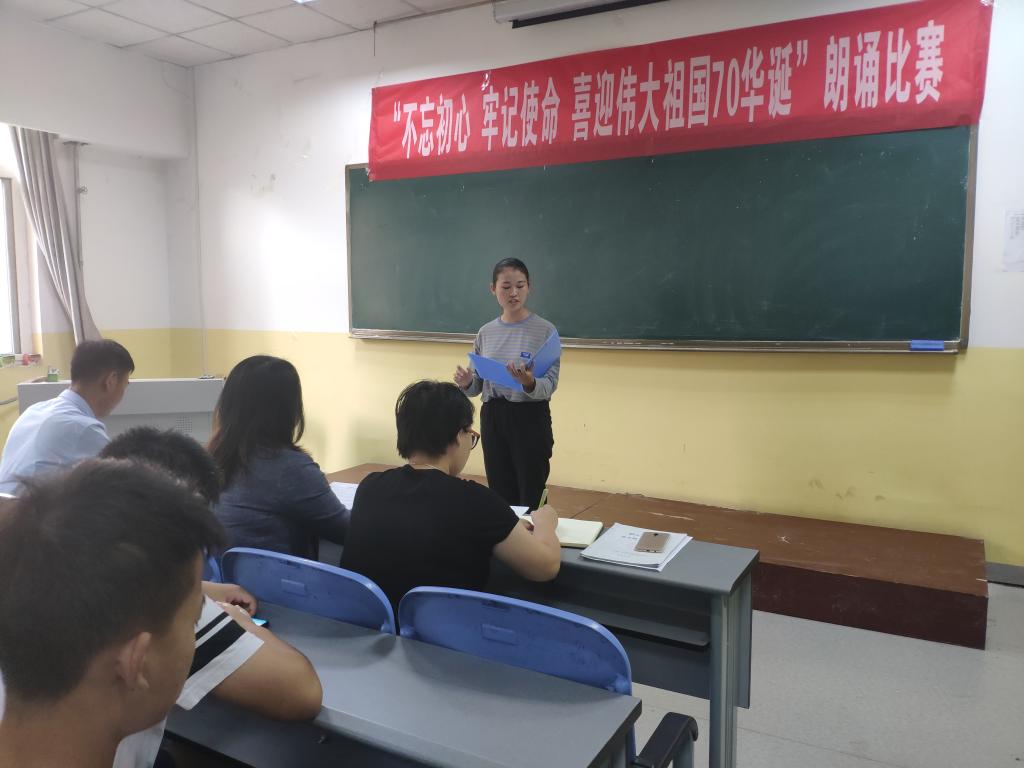 为庆祝中华人民共和国成立70周年,加强对学生爱国主义教育,2019年9月26号至29号,kaiyun开云官方在南楼408举办了“不忘初心,牢记使命,喜迎伟大祖国70华诞”主题朗诵大赛。kaiyun开云官方各班级均派出学生代表参加,共12支代表队参加了比赛。朗诵大赛评委为kaiyun开云官方党总支书记李小光、学生管理科科长李扬,团总支书记杨陈东及学生会部分干部。观众为所有大一新生。