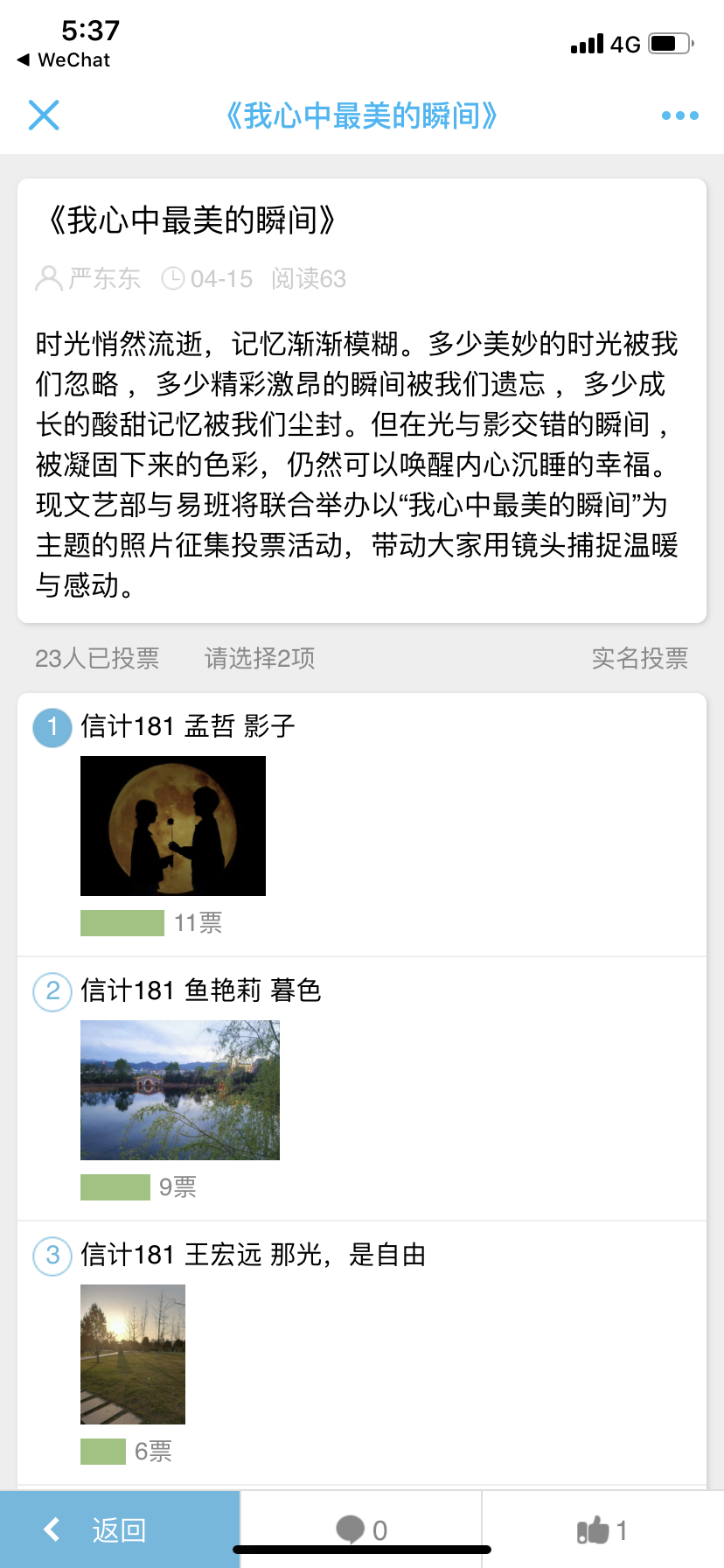 本次活动受到同学们的积极支持,参赛同学纷纷上传自己认为最美的照片到易班活动页面,其他同学也积极参与,投出了自己宝贵的一票,活动最终在大家票数的激烈竞争中落下帷幕。