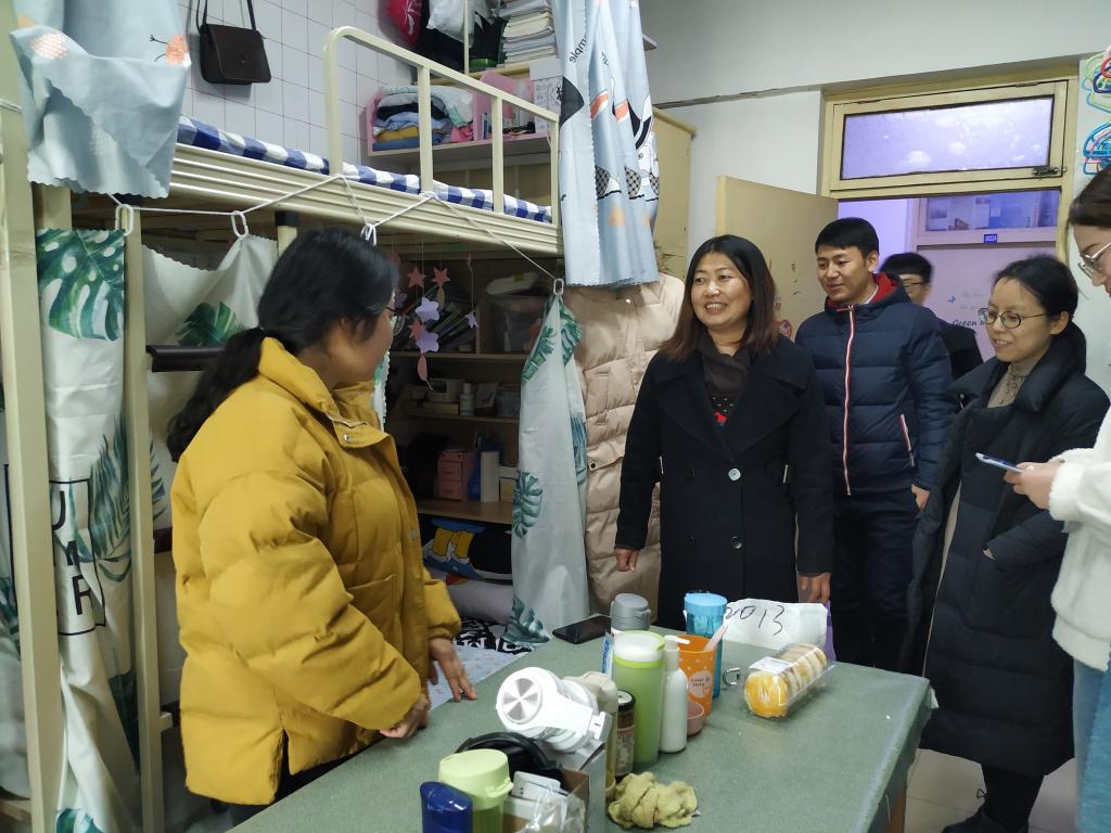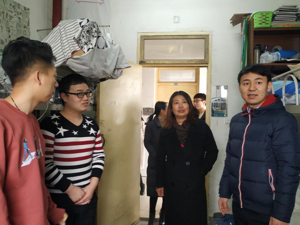 首先,各位老师对女生宿舍进行了检查,每个宿舍卫生都保持较好,之后分别询问了每位同学的寒假学习以及生活情况,表示出在新的一学期要打起精神,充分利用时间抓紧学习。接着检查了男生宿舍并提出了具体问题:1.开学初要及时打扫宿舍卫生,归整宿舍杂物,清理宿舍垃圾。2.排除安全隐患,禁止使用大功率用电器,禁止存放管制刀具。除此之外,老师们还对大四同学的就业以及考研情况做了详细的了解,督促每位同学积极就业,为以后的生活做好万全准备。
