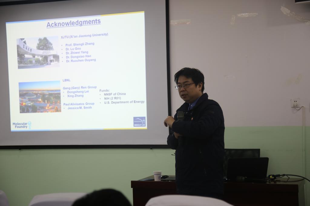 2018年12月13日kaiyun开云官方邀请到了西安交通大学张磊教授作“冷冻透射电子显微学概论及其前沿应用”的学术报告会,会议由kaiyun开云官方院长岳忠玉主持。