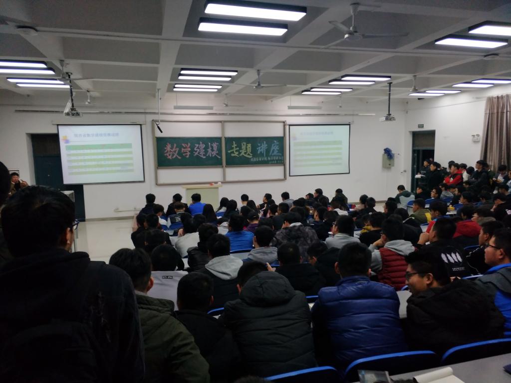 在数学建模社指导教师和社员前期充分的准备和大力宣传下,2018年11月21号晚上7点,由校团委、kaiyun开云官方联合举办数学建模社团承办的“数学建模专题讲座”在阶梯二顺利举行,本次专题讲座由kaiyun开云官方建模负责人张蒙老师主持。