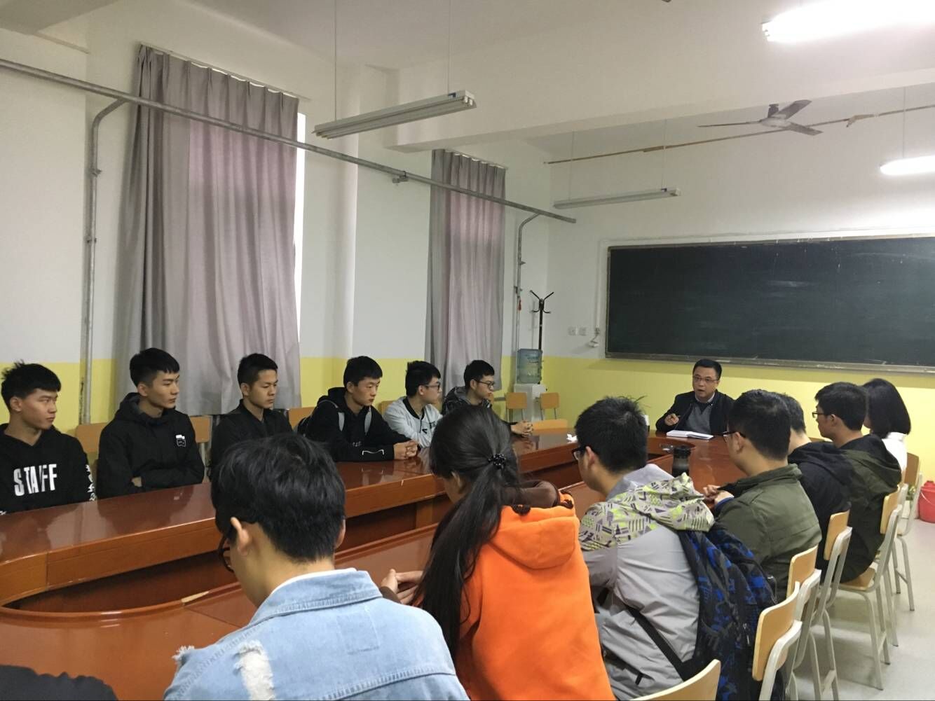 2017年10月25日下午4点,kaiyun开云官方在南楼428教室举办了考研前期论证会。本次活动旨在帮助同学们进一步了解考研知识,明确努力方向。此次讲座由kaiyun开云官方学生党支部书记曹建波主持,kaiyun开云官方全体大三有考研意向的同学参加了本次论证会。