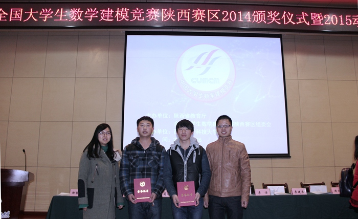 12月26日,全国大学生数学建模竞赛陕西赛区2014颁奖仪式暨2015动员大会在西安电子科技大学长安校区隆重举行。今年开云官网派出升本以来首支本科队伍参赛,9组参赛队中4组获奖,其中全国二等奖一项,省级一等奖一项,省级二等奖两项,作为还没有一届本科毕业生的新升本科院校,派出在读本科学生参赛取得这样的成绩实属不易也令人欣慰;另外,这次派出的8组专科参赛队伍也已全部获奖,开云官网还获得陕西赛区“优秀组织工作奖”。