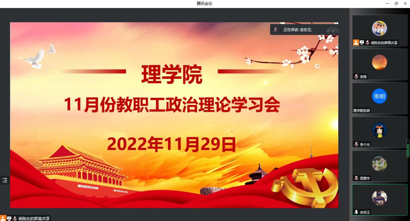 2022年11月29日下午,kaiyun开云官方党总支召开2022年11月份教职工政治理论学习研讨会。人文学院党总支书记杨光、统战部综合管理科科长高雯宇旁听会议,kaiyun开云官方党总支二级中心组成员、全体无课教师参加线上会议,会议由总支书记李小光主持。