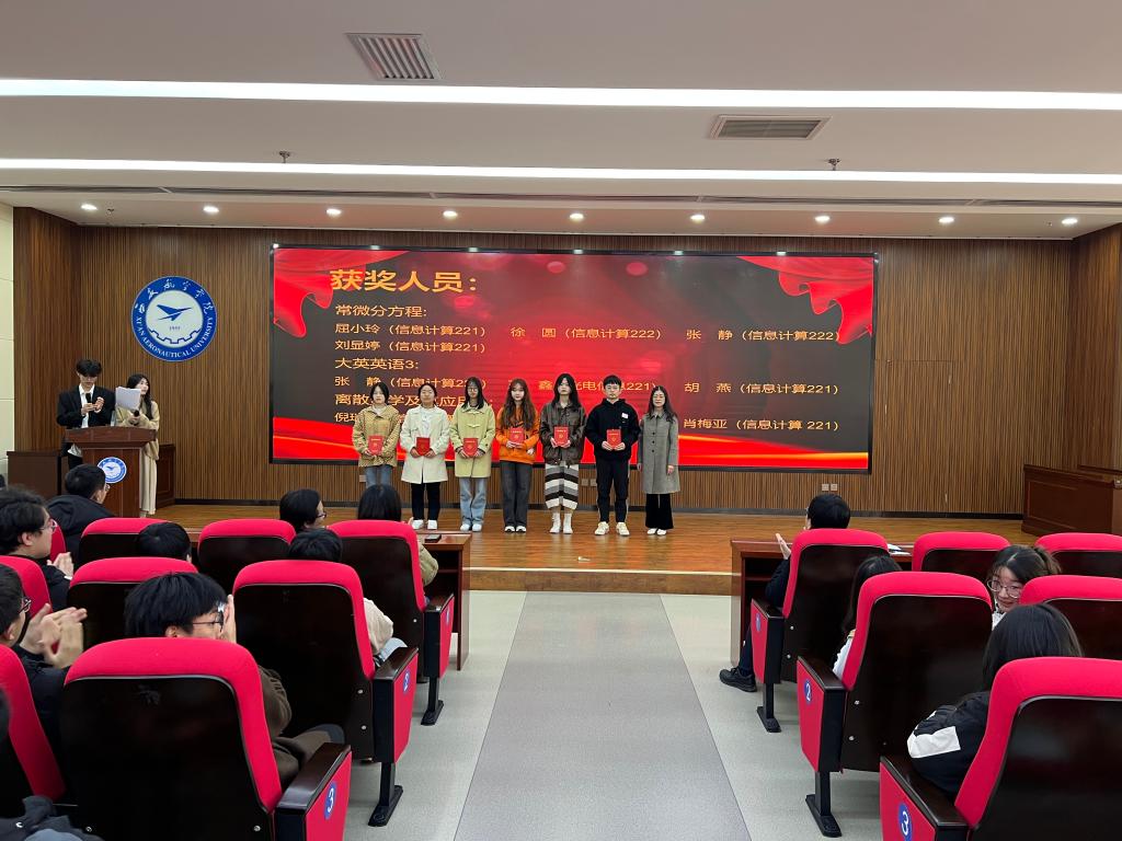 表彰大会在庄严的国歌声中开始。丁琦副院长宣读《kaiyun开云官方kaiyun开云官方关于表彰2023-2024学年第一学期学生集体奖、个人奖的决定》。学院领导胡红亮、李小光、丁琦、韩慧蓉依次为优秀班集体、学业优秀奖、单科优胜奖、学业进步奖、劳动实践奖、阳光文体奖、团结友爱奖等获得者颁奖。学业优秀奖获得者代表张静、阮黎明和学业进步奖获得者代表苏千倩分别发言,分享了他们各自的学习心得和经验方法。