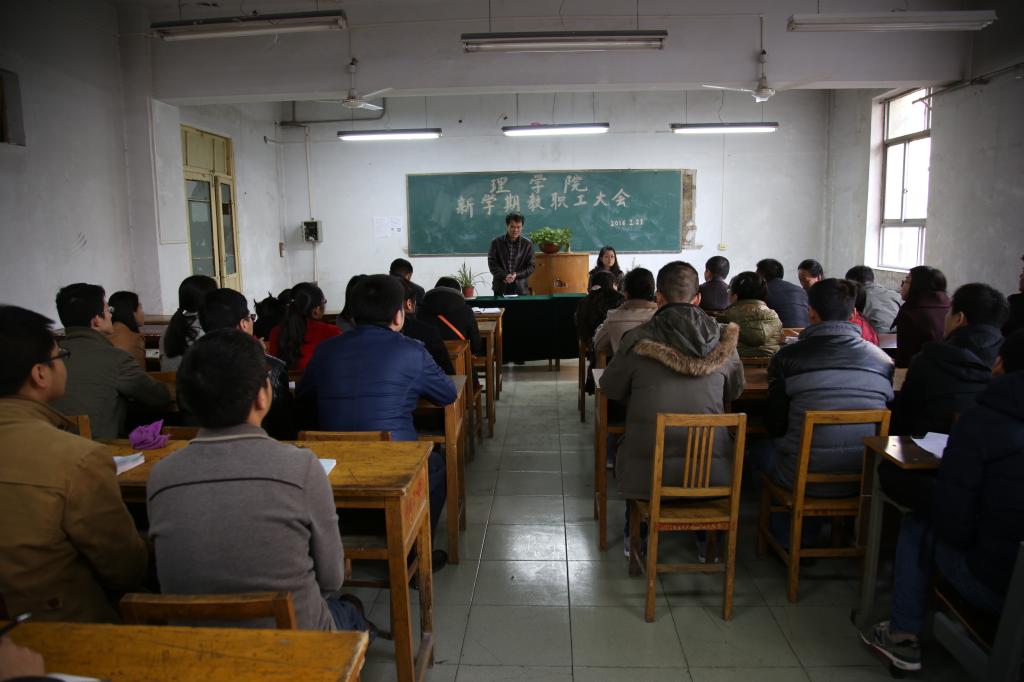 岳忠玉在会上传达了“2016年寒假工作会议”上党委书记陈平社所作的《全省教育工作会议精神》,全面解读了院长陈万强提出的“五个二”------两翼齐飞、两个特色、两个支撑、两个核心、两项评估等寒假干部会议精神,以及kaiyun开云官方2016年工作要点。他要求广大教师要认真领会陈院长和陈书记的讲话精神,充分认识学校发展中所面临的形势和任务,加大师资队伍建设力度,做好数学类和物理类本科基础课程的课程建设,凝聚学科方向,搭建科研平台,组建科研团队,以学校推行和加强“校院二级管理”为契机,秉承“教授治学、民主办院”的理念,建立健全kaiyun开云官方规章制度,完善激励约束机制,逐步形成“仁人和合、务实尚理、人尽其材、各美其美”的学院文化,切实做好学校各项工作。