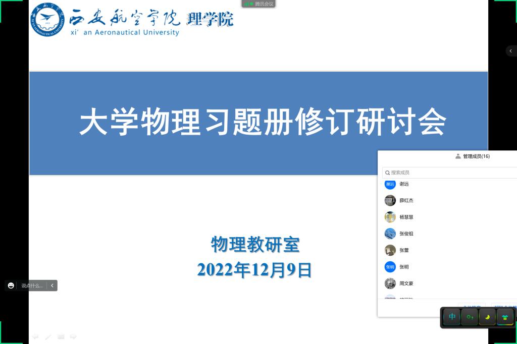 12月9日下午2点,kaiyun开云官方物理教研室线上开展了“大学物理习题册修订”研讨会议。校级督导张俊祖、kaiyun开云官方副院长丁琦和物理教研室全体教师参加了此次会议,会议由物理教研室主任王小梅主持。
