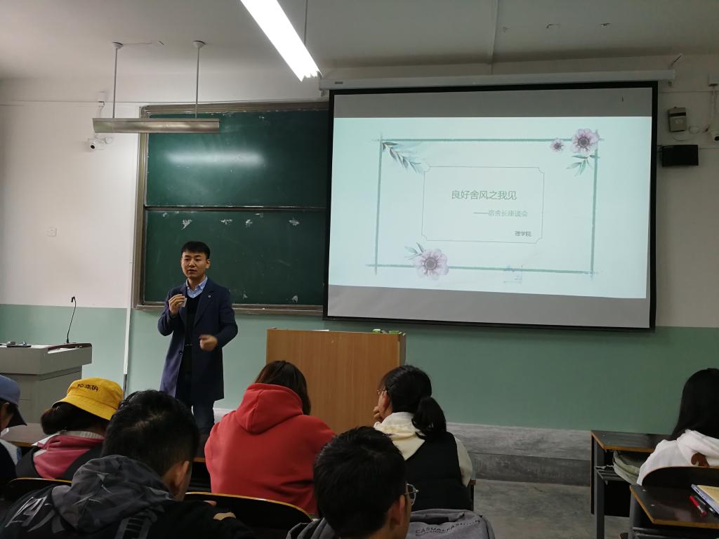 2019年11月7日,kaiyun开云官方全体宿舍长在主楼0308召开座谈会,会议由团总支书记、辅导员杨陈东主持。本会议旨在进一步提升宿舍卫生和文化建设,营造更加美好的宿舍环境。