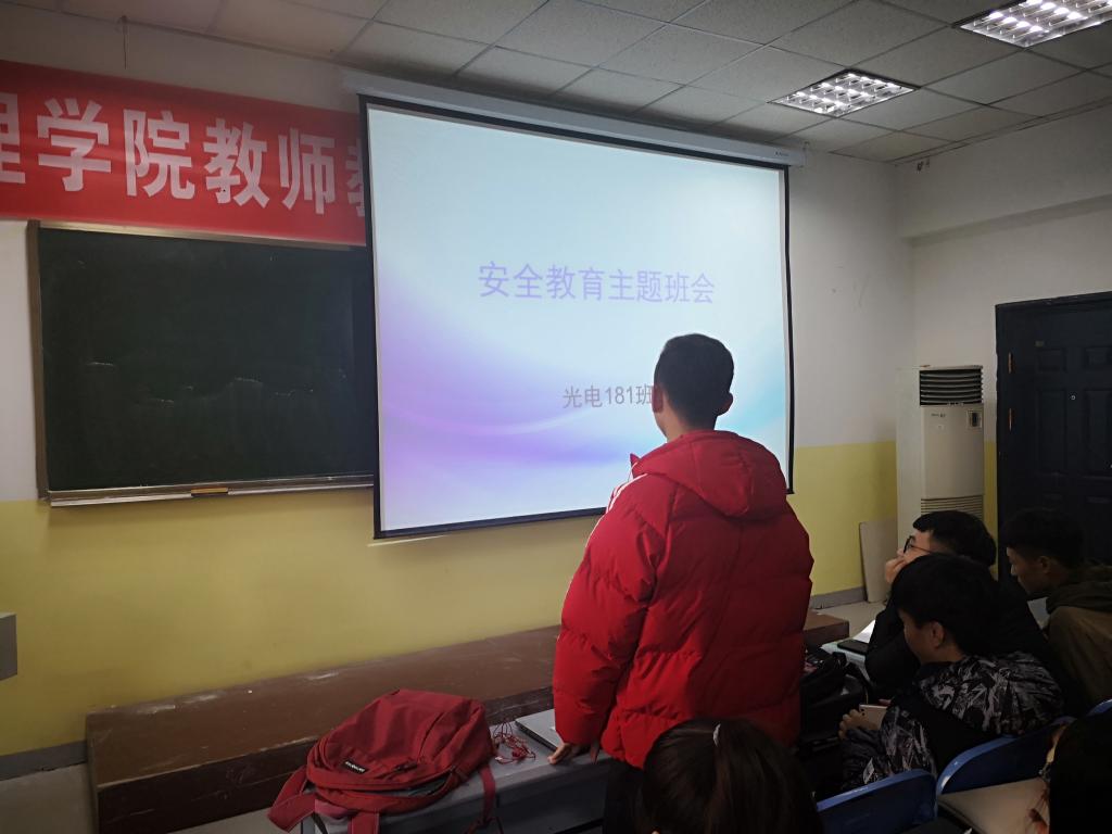 2018年11月21日下午4点,kaiyun开云官方光电信息科学与工程专业在南楼408召开安全教育主题班会。班主任王妙老师和光电181全体同学参与此次班会。
