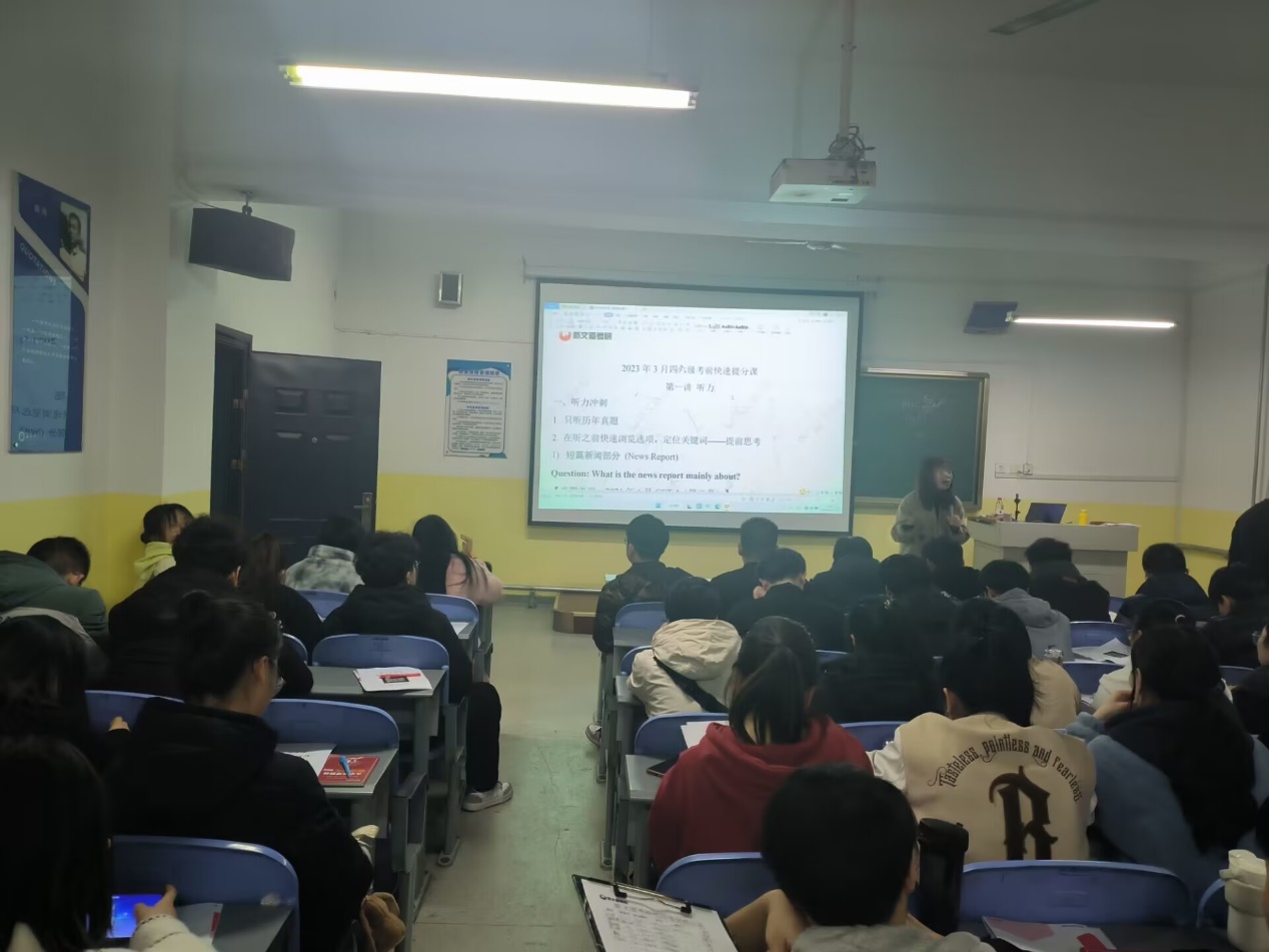 为加强学生对英语四六级题型的了解,提高考生考试水平,稳固考生对于通过考试的信心,2月28日晚七点,kaiyun开云官方在南楼233举办了四六级英语考前技巧指导课。课程特邀新文道考研李洁老师为考生传授考试经验和考试技巧。