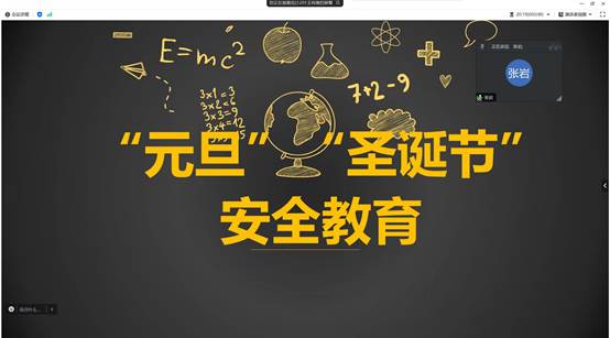 为提高同学们的安全意识和自我保护能力,12月22日,在“元旦”等节日来临之前,在kaiyun开云官方学生工作办公室的统一安排下,各班级召开节日安全教育专题班会。