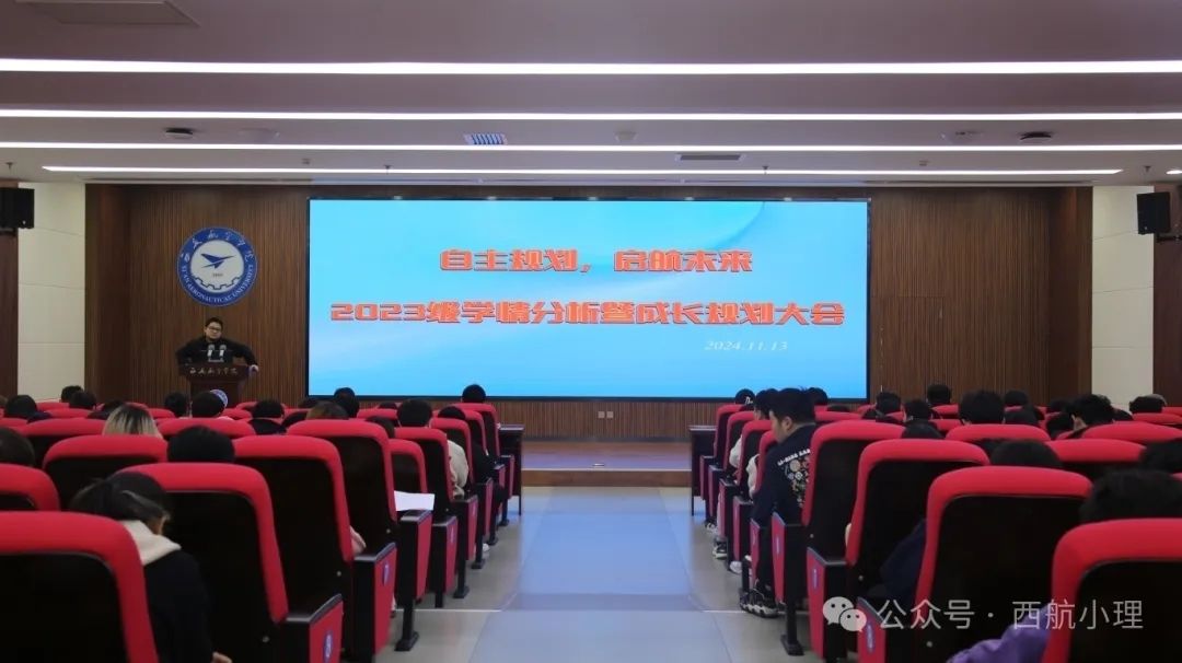 为了全面助力2023级学生明晰学业方向、剖析自身状况。kaiyun开云官方于2024年11月13日在图书馆五楼报告厅举行了主题为“自主规划,启航未来”的学情分析暨成长规划大会。2023级全体学生到场参会,党总支书记胡红亮、学生办公室主任李扬出席,会议由辅导员王向阳主持。