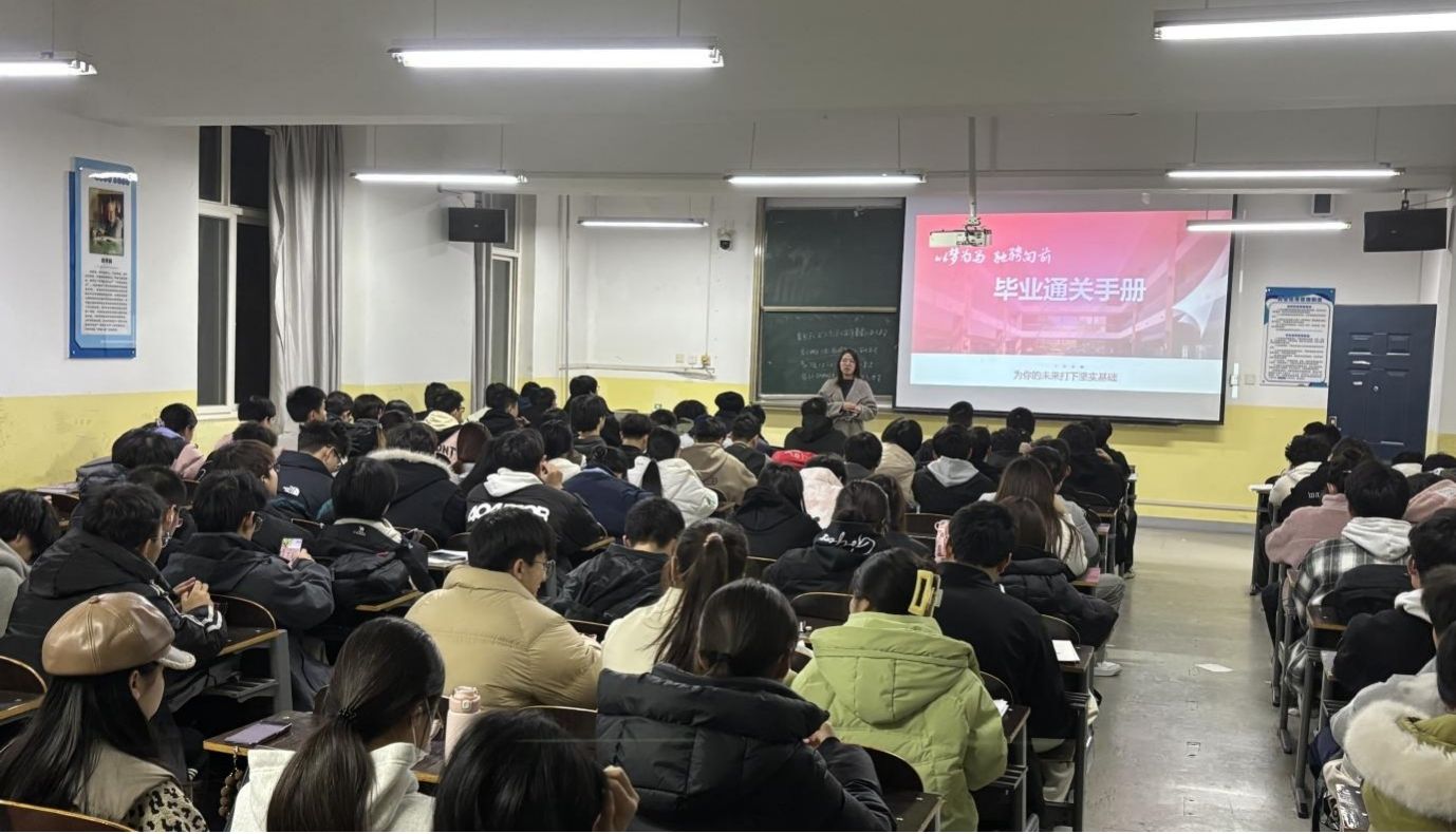 辅导员曾妍结合学生手册相关文件,为同学们做毕业通关指南解读,详细讲解了顺利毕业“通关”的关键要素与流程。从学分达标要求的细致阐释,到实习规划的战略布局,再到毕业论文撰写与答辩的核心要点,无一遗漏。她强调,同学们应提前规划实习,积累行业经验;注重综合能力提升,增加专业竞赛参与;树立学术诚信,夯实专业基础。