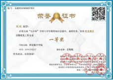 近日,由教育部大学物理课程教学指导委员会中南地区、西北地区和西南地区工作委员会,国家级大学物理课程虚拟教研室(中南大学),湖南省物理学会、江苏省物理学会、青海省物理学会和陕西省物理学会等主办的第五届“九斗杯”全国大学生物理知识竞赛落下帷幕。kaiyun开云官方学子王思纯、刘钦、李立洋3名同学荣获西北赛区一等奖,全国总决赛二等奖。