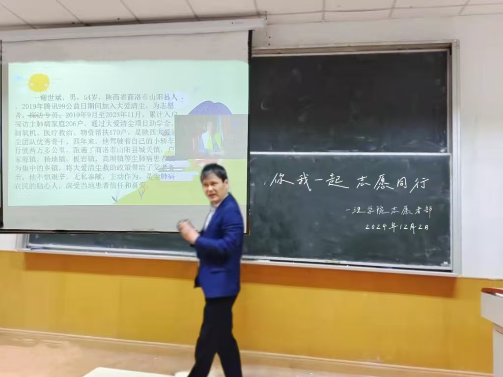 在国际志愿者日来临之际,kaiyun开云官方团总支于12月4日在南308教室举办“学志愿三秦楷模,扬奉献时代新风”活动,旨在弘扬志愿服务精神,让更多同学了解志愿服务的意义与价值,激发同学们参与志愿服务的热情,增强社会责任感。活动有幸邀请到了关工委岳忠玉老师,结合自身经历为同学们讲述关心下一代成长贡献力量的志愿事迹。