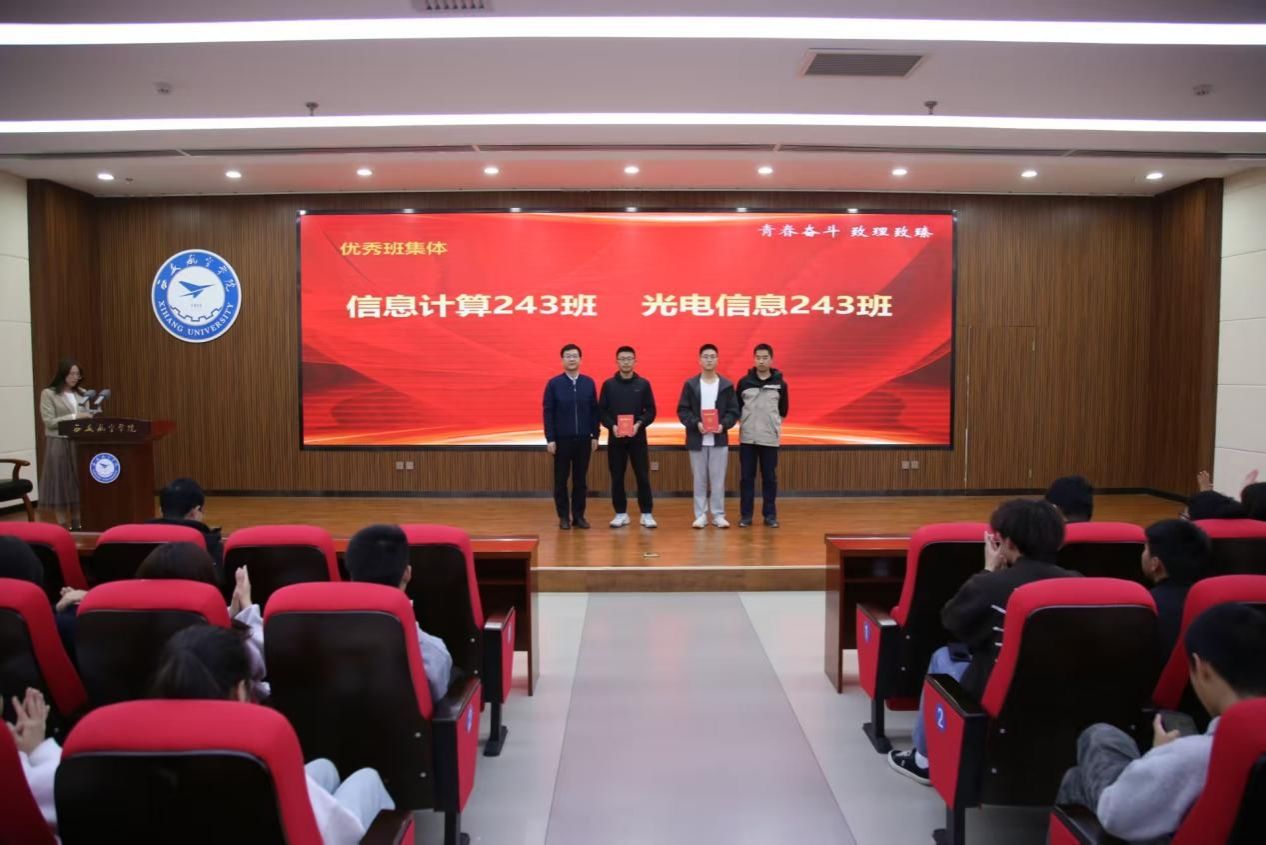 4月2日晚,kaiyun开云官方在莲湖校区图书馆五楼报告厅隆重举行“蓝图育人”大一年级优秀集体、个人表彰大会,总结大一年级第一学期学生工作取得的成绩,表彰涌现出来的先进集体和优秀个人。学院党总支书记胡红亮和全体学工干部以及大一年级全体学生参加,共同见证荣誉时刻,聆听榜样故事,树立青春风向标,激发奋进力量。