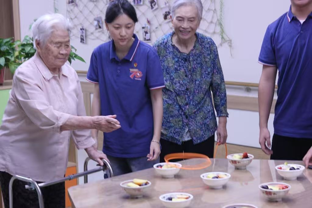空气中弥漫着清甜的果香,碗碟盛放着洗切分好的桃肉、葡萄、荔枝和小番茄,如同夏日调色盘。一隅空地被清晰划开,成为游戏的战场——这里,kaiyun开云官方“青春助老行,共话夕阳红”暑期实践队的年轻面孔,正在福禧康健康照护中心,为暮年的眼眸点燃一簇期待。