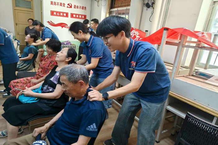 让分层服务激发代际共鸣。健康守护有深度。“银龄健康护航计划”将中医养生化为可感可触的体验。青年们化身助教,带领老教师习练颈椎操、学习穴位按摩,义务劳动同步解决生活难题。退休教授感慨:“这些孩子把知识揉碎了教,比药方更暖人心。”