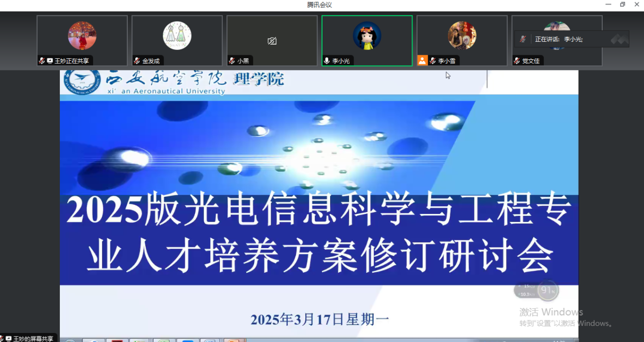 2025年3月17日下午,kaiyun开云官方通过线上(腾讯)会议召开了2025版光电信息科学与工程专业人才培养方案修订研讨会。会议邀请了西安理工大学张显斌教授参与指导,学院院长李小光、信息计算和光电专业负责人、教研室主任和各课程负责人等出席了会议。会议由学院院长李小光主持。