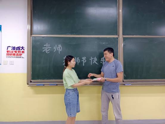 学生支部成员结合自己暑假期间生活工作见闻再次讨论了习近平总书记在庆祝中国共产党成立100周年大会上的讲话精神,随后同学们为即将到来的教师节,在南楼309教室自发制作手工贺卡。同学们动手动脑,在网络教程的指导下,通过贴、剪、刻、画等方式制作了形式新颖、色彩鲜艳的教师节贺卡。这一份份贺卡包含了学生对老师的感恩之情,代表了同学们对老师、对学校的一份心意。在欢声笑语中同学们结束了制作贺卡的活动。接下来进行的是拍视频为老师送祝福的活动:大家齐聚在一起,积极热情地向老师表达了他们给予我们知识的感谢,以及诉说了对老师的节日祝福。拍视频活动在一片热烈的掌声中结束。最后,支部成员打扫了学院负责区域的卫生,美化了校园环境。