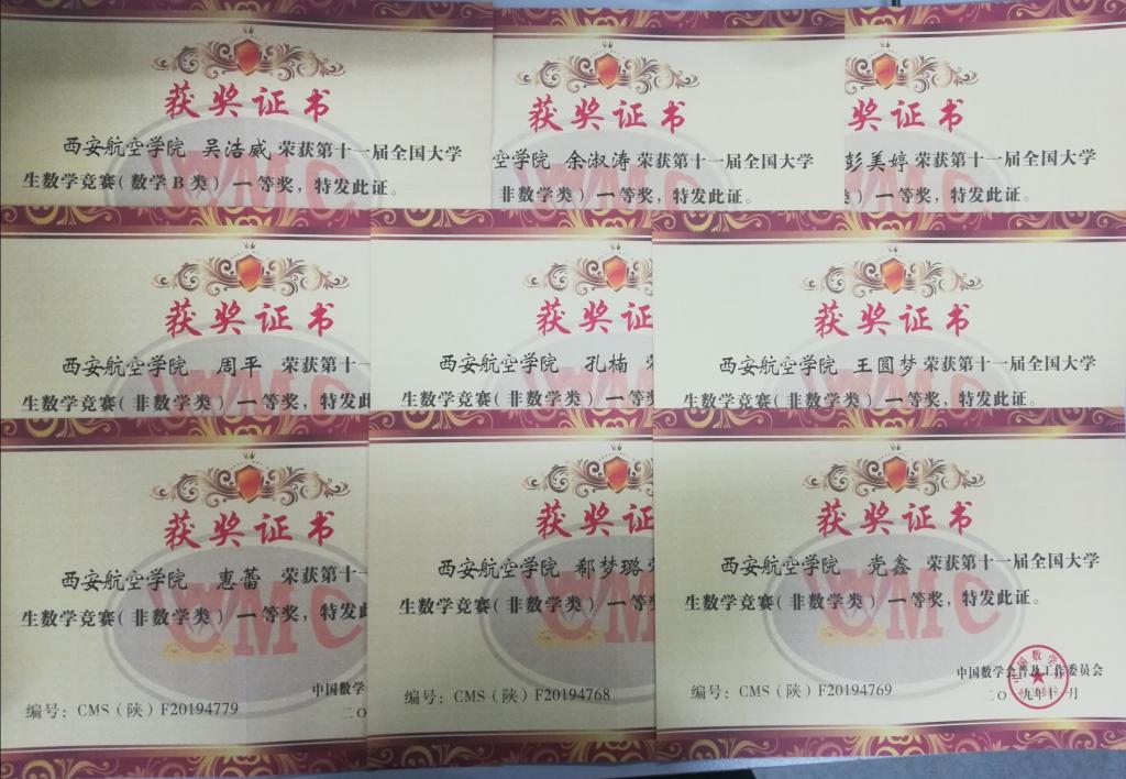 2019年第十一届全国大学生数学竞赛成绩揭晓,开云官网共获82项奖项,其中陕西省一等奖17项、二等奖30项、三等奖35项,其中数学类获省级一等奖1项,省级二等奖1项,省级三等奖3项,本次竞赛是开云官网第四次参赛,也是历年来参加人数和获奖人数最多的一次。