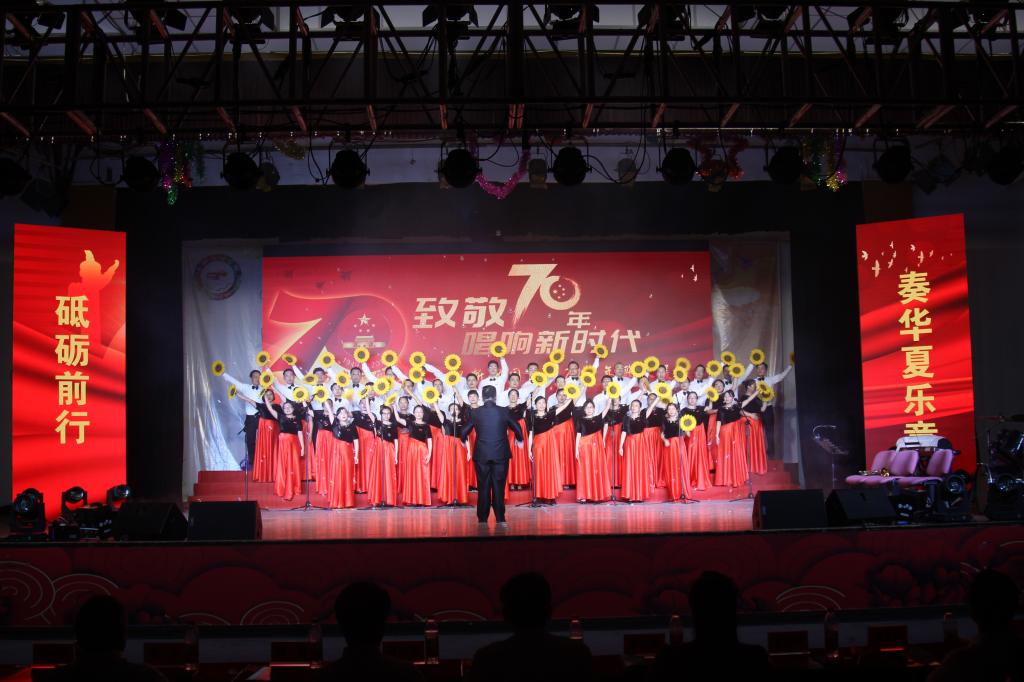 为庆祝中华人民共和国成立70周年,表达对伟大祖国的深情祝福,继续推进“不忘初心,牢记使命”主题教育,9月27日晚,kaiyun开云官方“致敬70年唱响新时代”庆祝新中国成立70周年歌咏展演活动在沣惠校区隆重举行。由kaiyun开云官方党政领导及全体教职工组成的合唱团以《在希望的田野上》为表演曲目参加了展演活动。