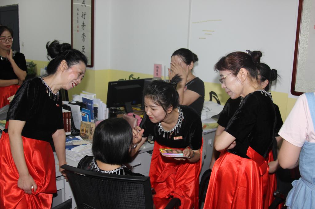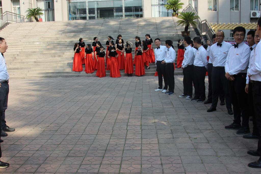 当音乐声缓缓响起,历经数周辛苦排练的全体教职工在胡宸铭教练的指挥下,用铿锵有力和饱含深情的声音娓娓唱响对祖国的热爱之情,整齐的节奏,悦耳的和声,动情的朗诵,精彩表现赢得了观众的共鸣与掌声。