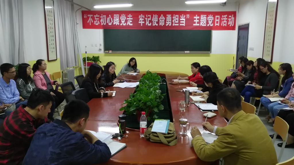 5月10日下午,kaiyun开云官方教工党支部结合本科合格评估在教学南楼428会议室开展了“不忘初心跟党走,牢记使命勇担当”的主题党日活动。kaiyun开云官方党总支书记李小光、教工党支部书记丁琦和教工党支部所有党员参加会议。会议由丁琦主持。