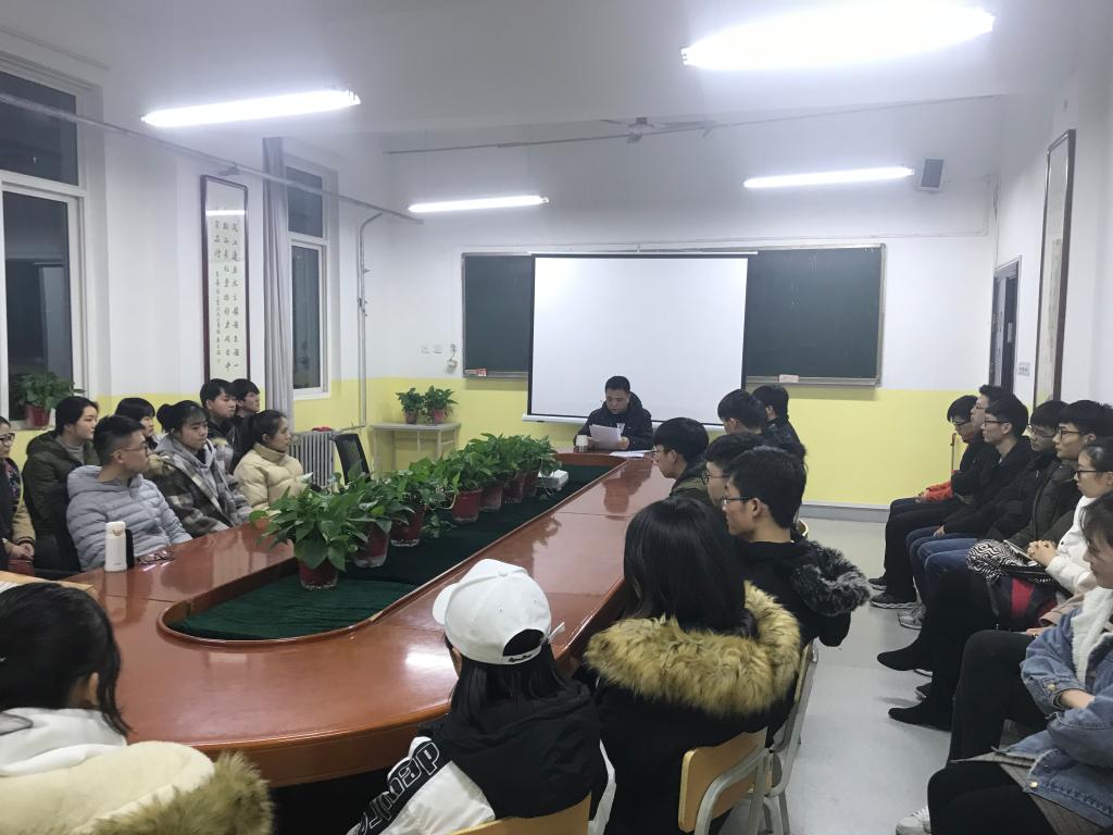 2019年1月11日,kaiyun开云官方学生党支部于教学南楼428召开党员组织生活大会,kaiyun开云官方全体党员以及入党积极分子参加此次会议,学生党支部书记曹建波老师出席并做主持。