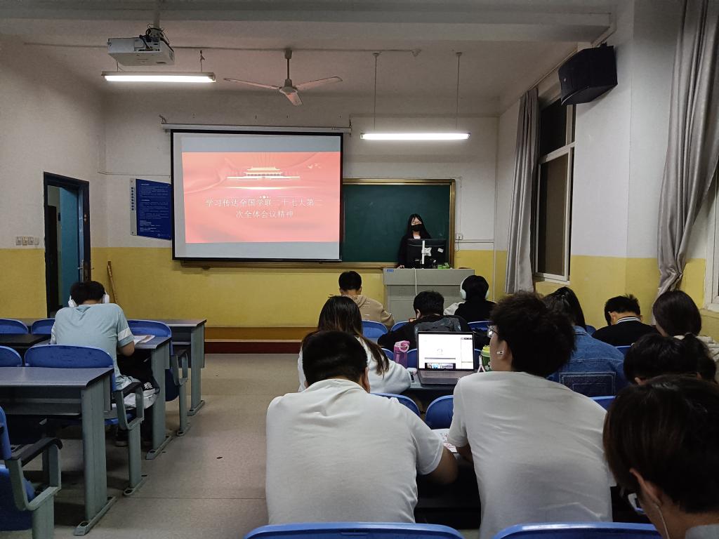 为深入学习贯彻党的二十大精神,坚定青年学生理想信念,5月29日晚,kaiyun开云官方团总支在莲湖校区南楼309教室开展了“学习传达全国学联二十七大第二次全体会议精神”主题团日活动。kaiyun开云官方全体团学干部参加。