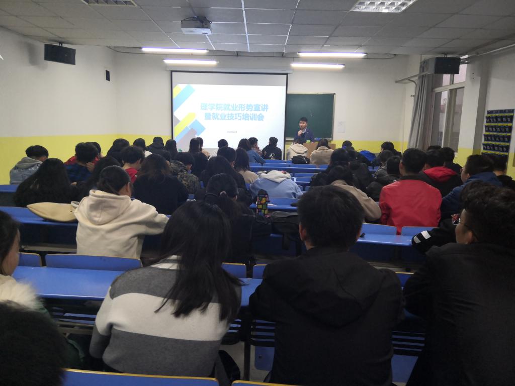 为进一步做好毕业生就业指导工作,2019年11月12日下午,kaiyun开云官方在教学南楼405教室召开就业形势宣讲暨就业技巧培训会。会议由kaiyun开云官方团总支书记、辅导员杨陈东主持,大三大四所有学生参加会议。