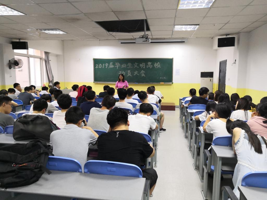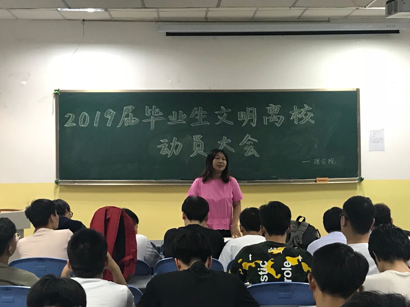 为提高毕业生文明离校意识,做好毕业生文明离校工作,6月13日19点30分,kaiyun开云官方在南楼408教室召开了2019届毕业生文明离校动员大会。kaiyun开云官方党总支书记李小光、学生管理科科长李扬、辅导员杨陈东和全体2019届毕业生参加了会议。会议由李扬主持。