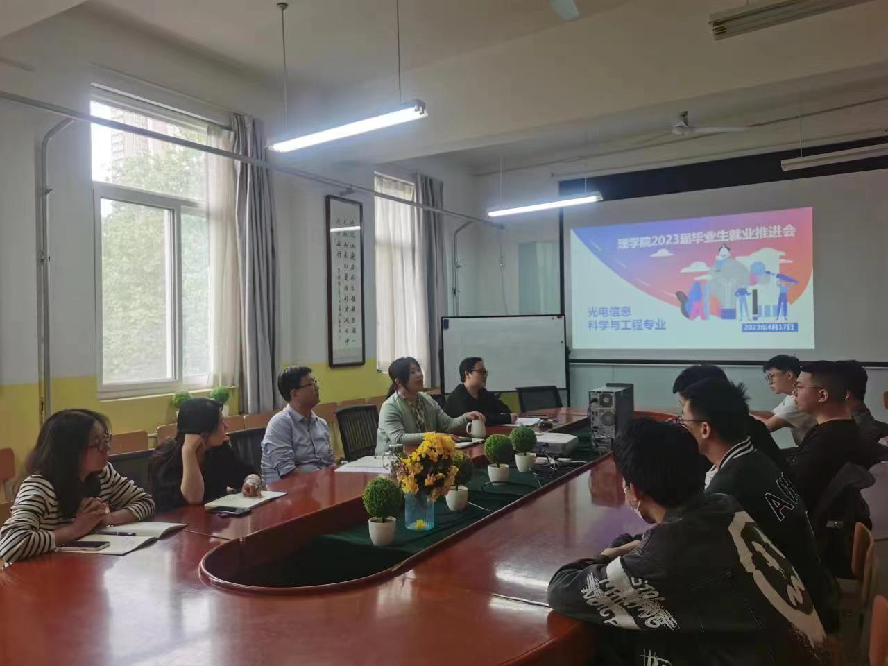 为持续推进2023届毕业生充分就业、帮助未就业学生高质量就业,4月12日和4月17日下午4点,kaiyun开云官方在教学南楼428会议室分别召开信息与计算科学专业和光电信息科学与工程专业2023届未就业学生就业工作推进会。kaiyun开云官方党总支书记胡红亮、院长李小光、教研室主任王小梅、周千、专业负责人张惠玲、王妙和学生管理科科长李扬、毕业班辅导员、班主任及2019级未就业学生参加了此次会议。会议由李扬主持。