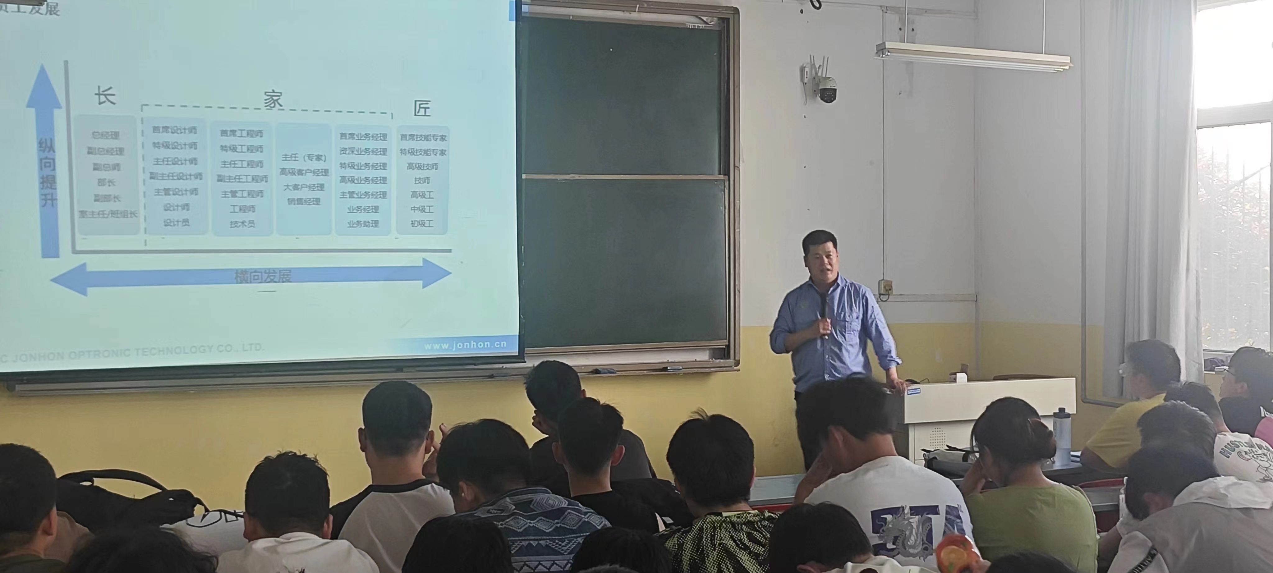 为进一步加强学生对专业的认识,明确就业方向,kaiyun开云官方于5月10日、15日分别教学南楼208教室和图书馆五楼报告厅举办企业宣讲会,邀请中航光电、三安光电、喜星电子、讯方技术和软通动力的负责人宣讲,kaiyun开云官方党总支书记胡红亮、学工办主任李扬、校企合作负责人曹建波、光电专业负责人王妙、信计专业教师陈国心、辅导员张岩和大三全体学生参加。