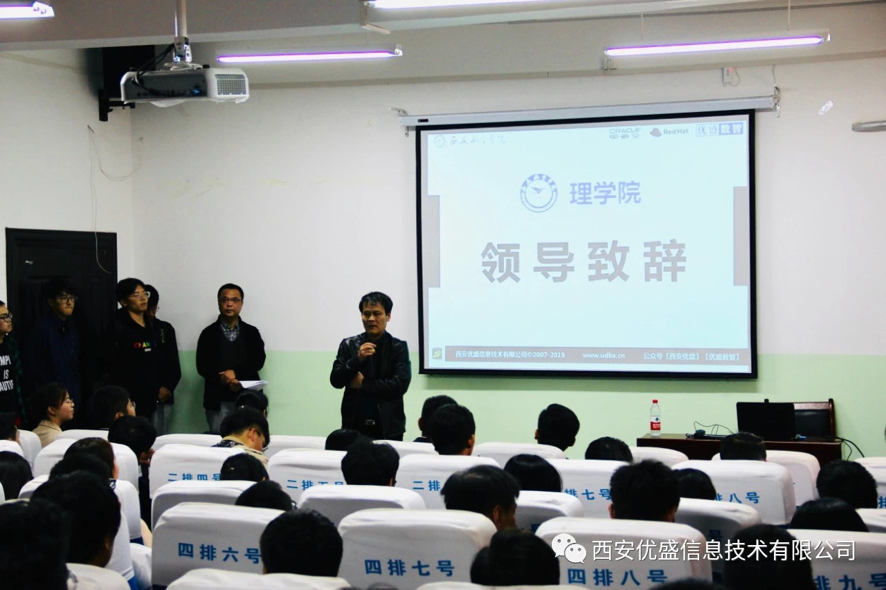 首先由岳忠玉致辞,他介绍了参加本次活动嘉宾,讲解了大数据的发展历程及前景,希望学院能再接再厉,在大数据方面继续引领学校发展;任静向参加授牌仪式的嘉宾、老师和同学表示欢迎。接着,王云清向学院大数据俱乐部成立致贺词,雷建军介绍了西安优盛公司的具体发展情况以及同开云官网合作未来发展的前景,学生代表、国家励志奖学金获得者王晨向大家分享了专业学习经验,龚浩杰对俱乐部会员进行动员并对近期活动做了简单说明。最后,OracleUniversity代表、西安优盛信息技术有限公司负责人和学院领导共同为大数据俱乐部负责老师授牌并合影留念。