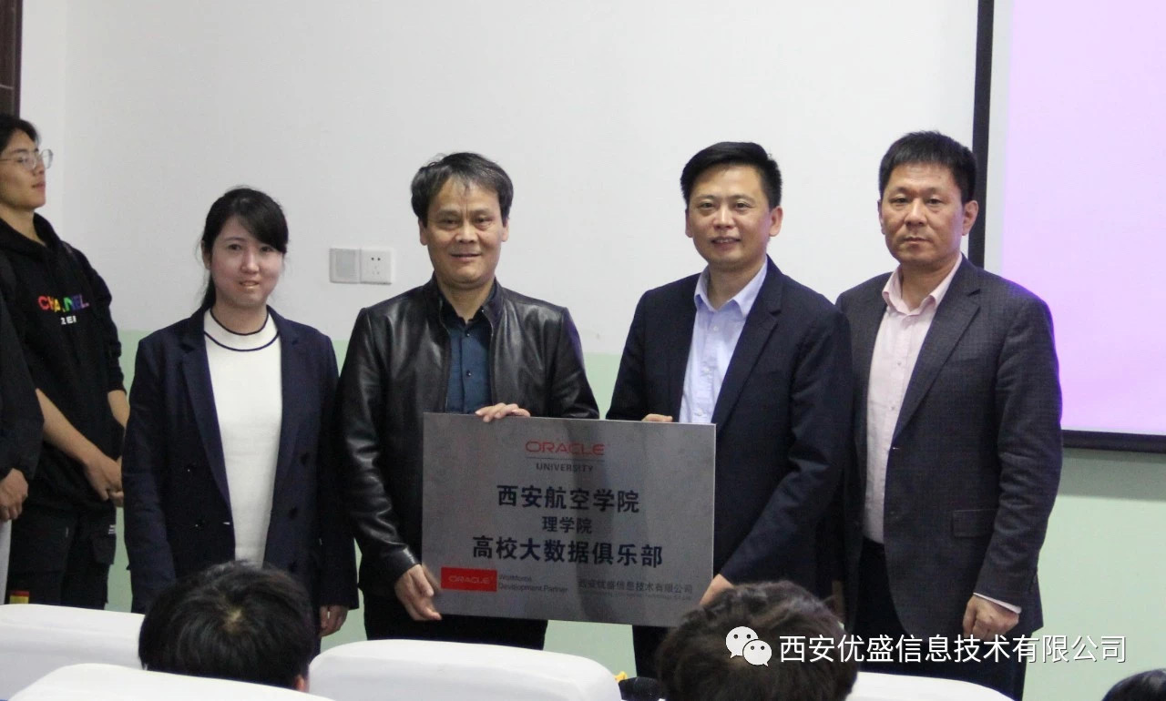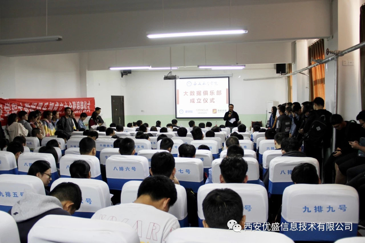 2019年10月17号下午4点,kaiyun开云官方在北楼447举行大数据俱乐部成立大会暨授牌仪式。参加会议的有kaiyun开云官方院长岳忠玉、副院长丁琦、计算机学院副院长任静、信息与计算工程专业负责人张惠玲、kaiyun开云官方校企合作委员会主任曹建波、OracleUniversity(中国)北方区经理王云清、西安优盛信息技术有限公司总经理雷建军、副总经理龚浩杰、培训认证主管王欢以及信息与计算工程专业的教师和学生。