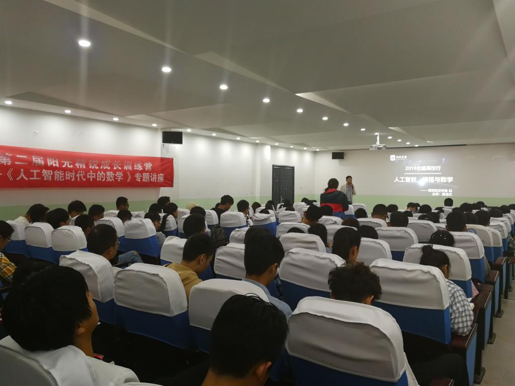2019年5月14日,kaiyun开云官方邀请西安优盛公司在南108为信息与计算科学专业学生和受资助学生举办了第二届阳光精锐成长训练营——“人工智能时代中的数学”专题讲座。讲座由kaiyun开云官方曹建波老师主持,西安优盛人工智能项目负责人龚浩杰主讲。